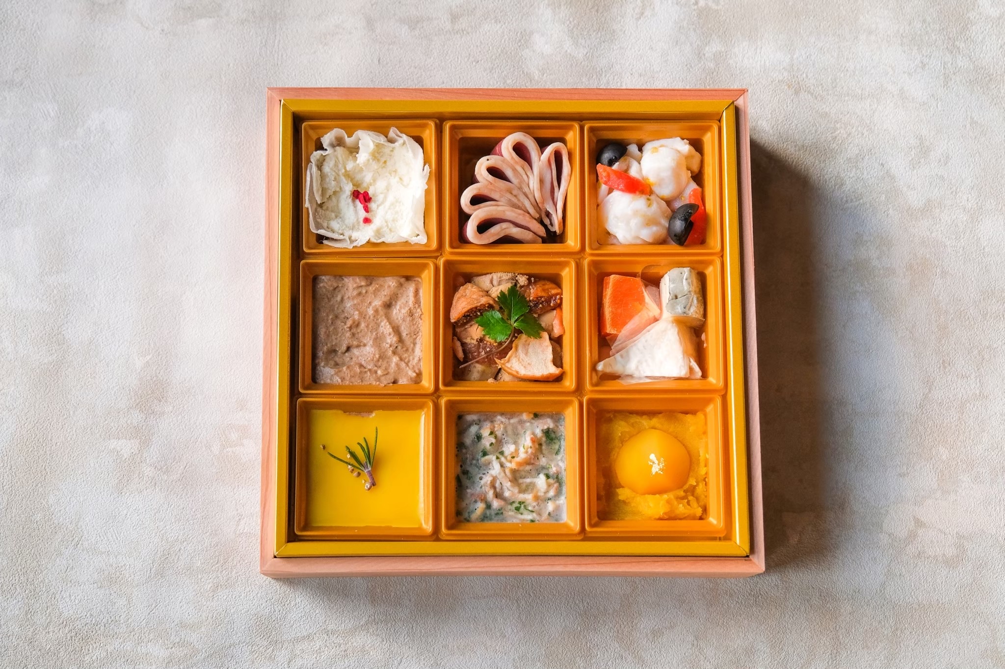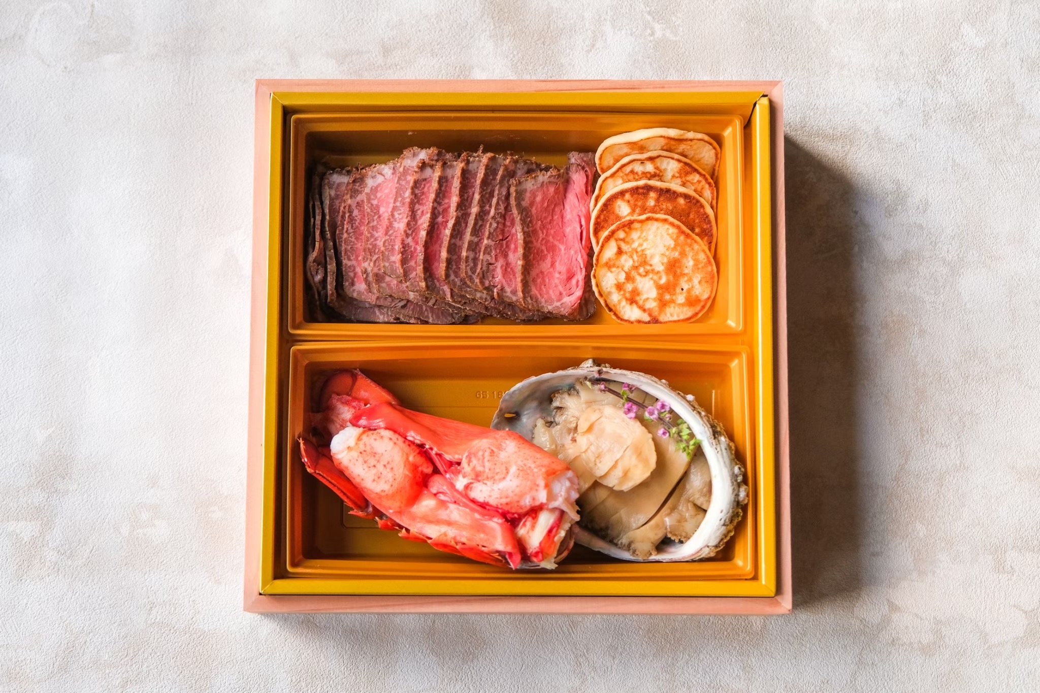 いわて黒毛和牛(A5)、オマール海老、鮑(あわび)、キャビア、マグレ鴨、フォアグラなどの高級食材が豪華に盛り込まれ、全て手作りで丁寧に作り上げた、多彩で豪華なフレンチおせちです。